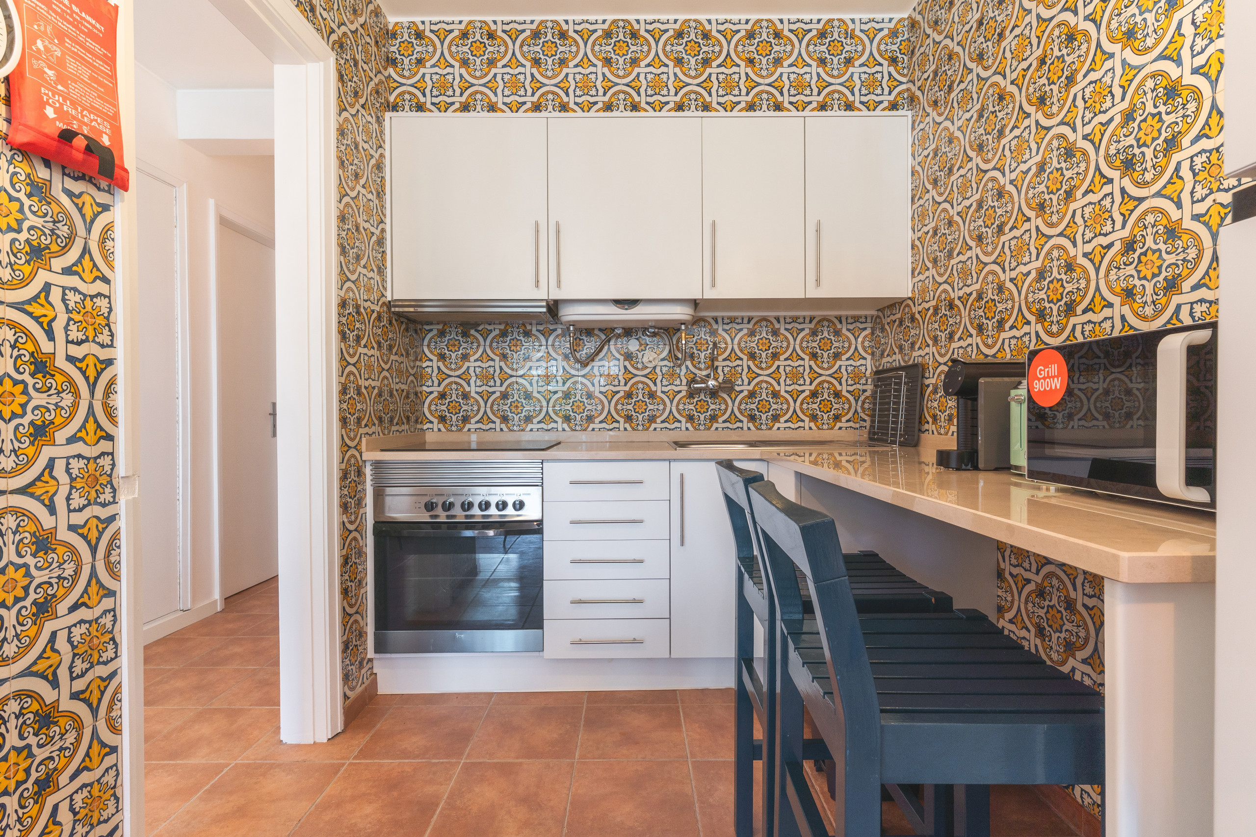 La cocina está completamente equipada con todos los electrodomésticos y utensilios esenciales necesarios para preparar comidas, incluyendo un frigorífico, congelador, horno, microondas, placa de cocina, cubiertos y platos. También hay una lavadora y un secador de pelo disponibles. El apartamento incluye un Smart TV con caja para entretenimiento durante su estancia. Una cuna y una silla para bebés pueden proporcionarse previa solicitud, lo que hace que el apartamento sea adecuado para huéspedes que viajan con niños pequeños.