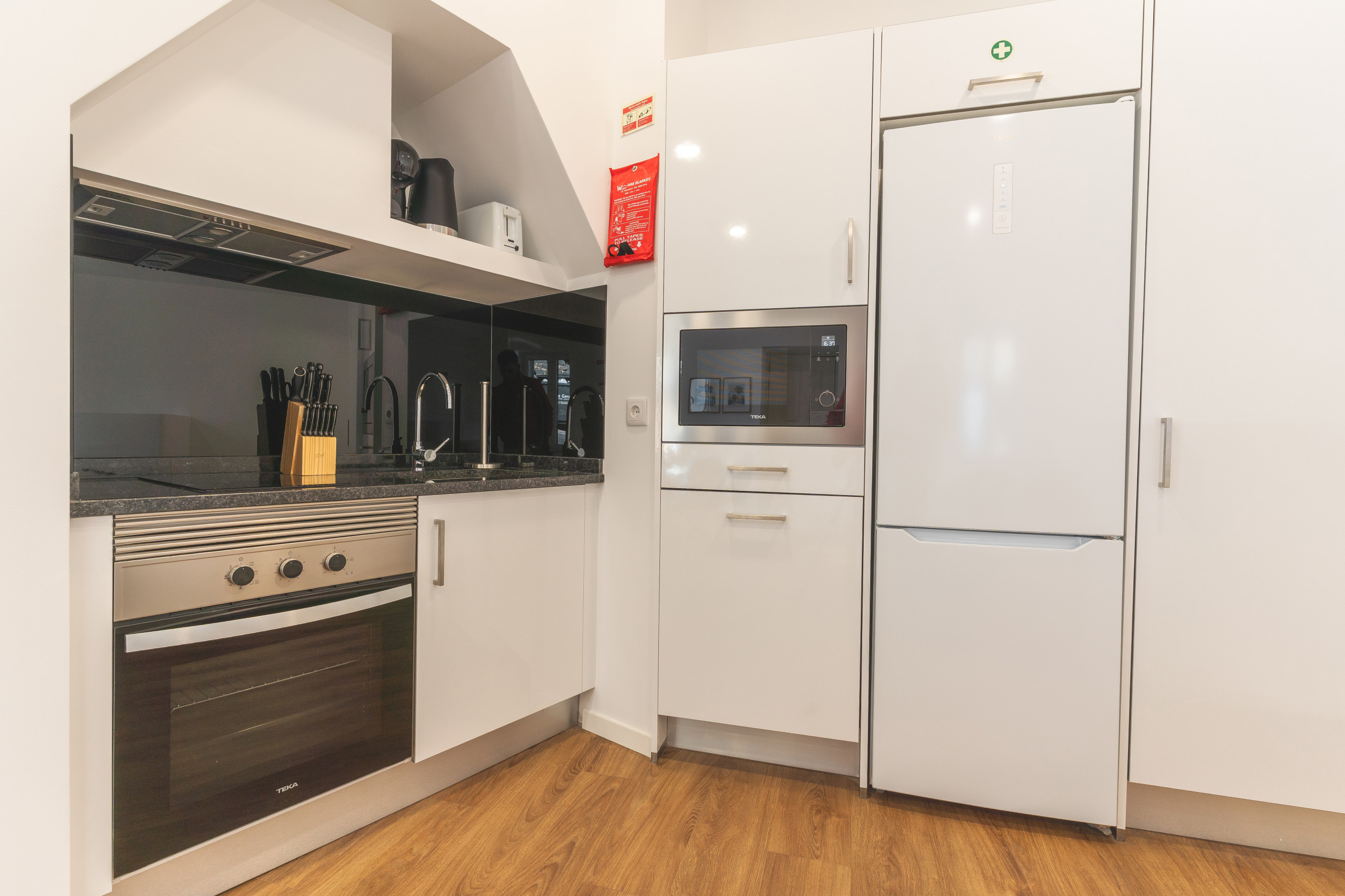 La cocina está completamente equipada con todos los elementos esenciales para preparar comidas, incluyendo nevera, congelador, horno, microondas, placa de cocina, cubiertos, platos y utensilios de cocina. También hay una lavadora disponible, lo que hace que el espacio sea adecuado para estancias más largas. Las familias que viajen con bebés pueden solicitar una cuna y una trona.