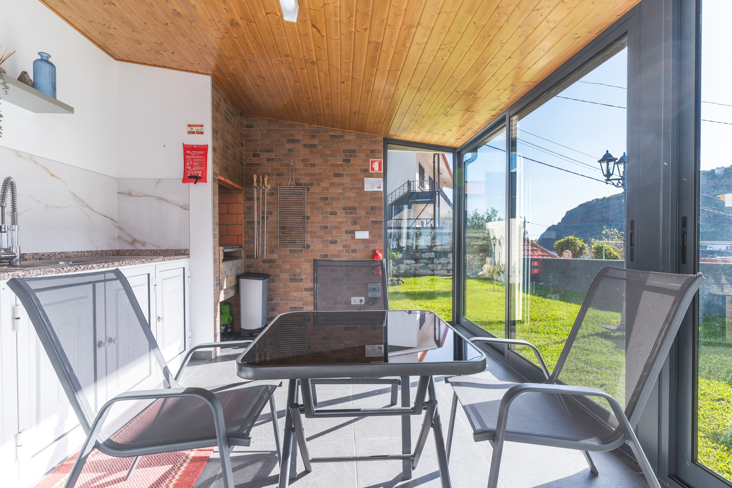 En el interior, la casa cuenta con Smart TV con TV box. Para quienes viajan con niños, hay cuna y trona. Se proporcionan sábanas y toallas. No se permite fumar en el interior.