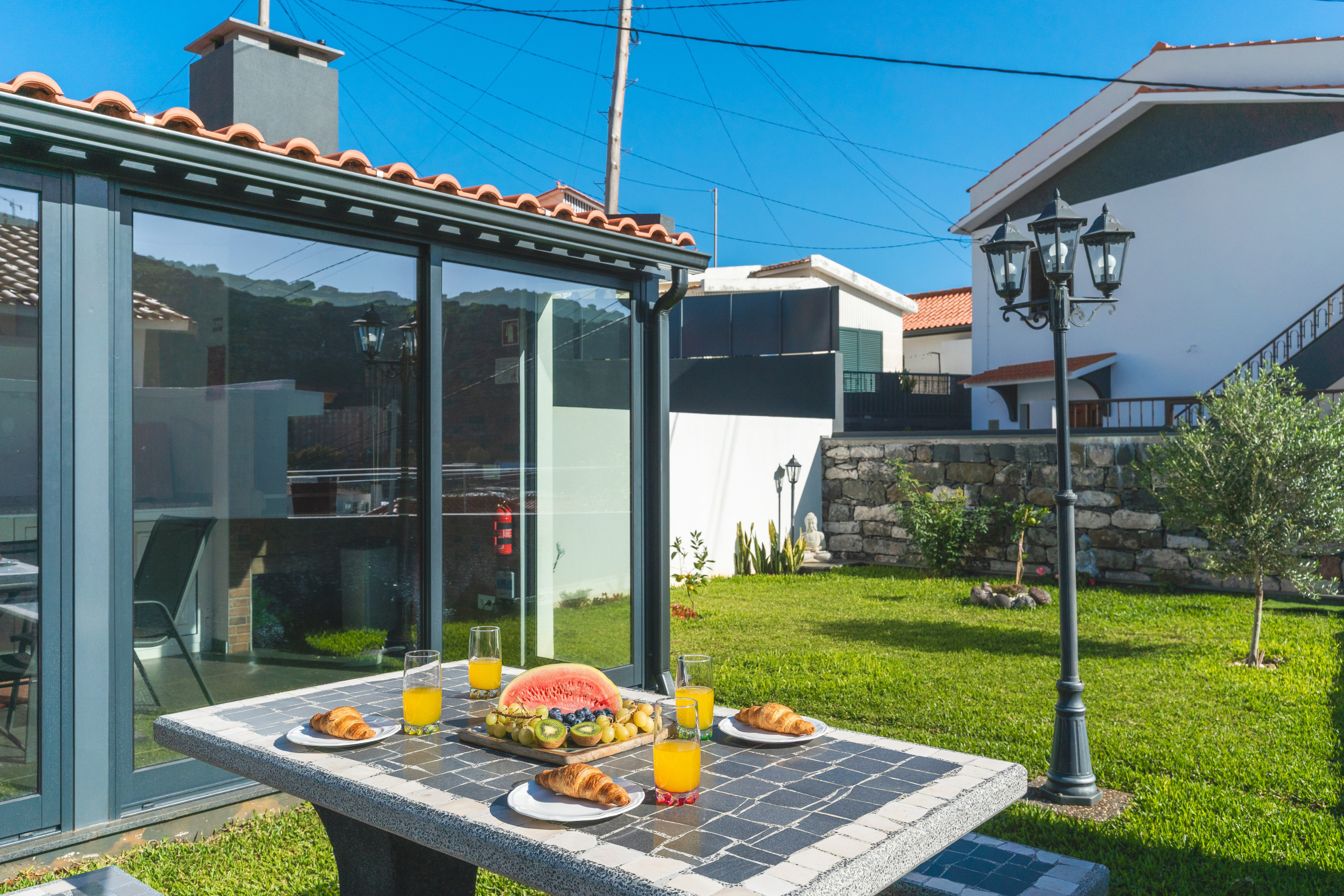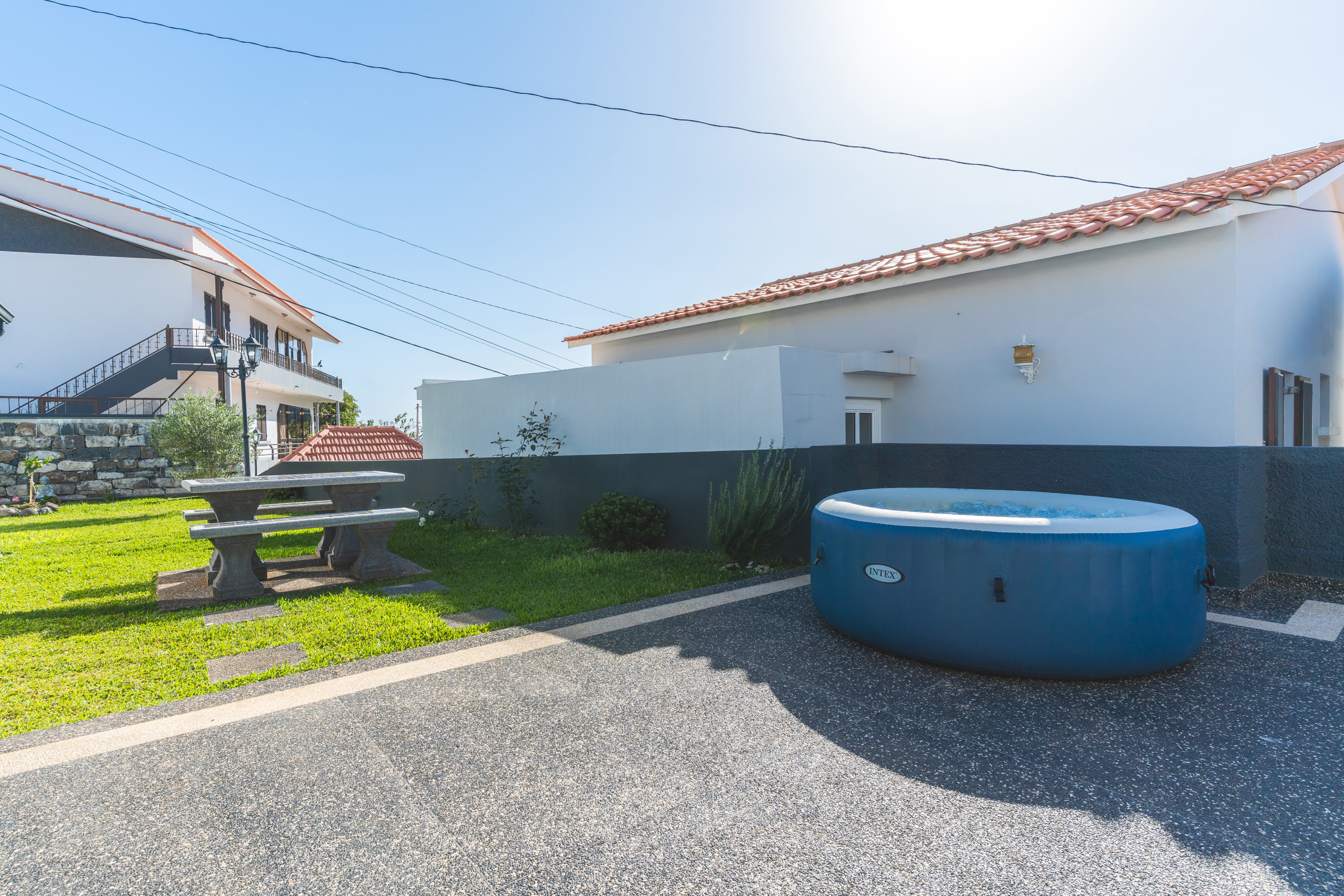 En el exterior, la terraza privada ofrece un gran espacio para relajarse y vistas de los alrededores. El exterior cuenta con jacuzzi y zona de barbacoa para comer al aire libre. La propiedad dispone de plaza de aparcamiento privada y paradas de autobús cercanas con acceso a otras partes de Madeira. La playa de arena está a solo 5-10 minutos a pie.