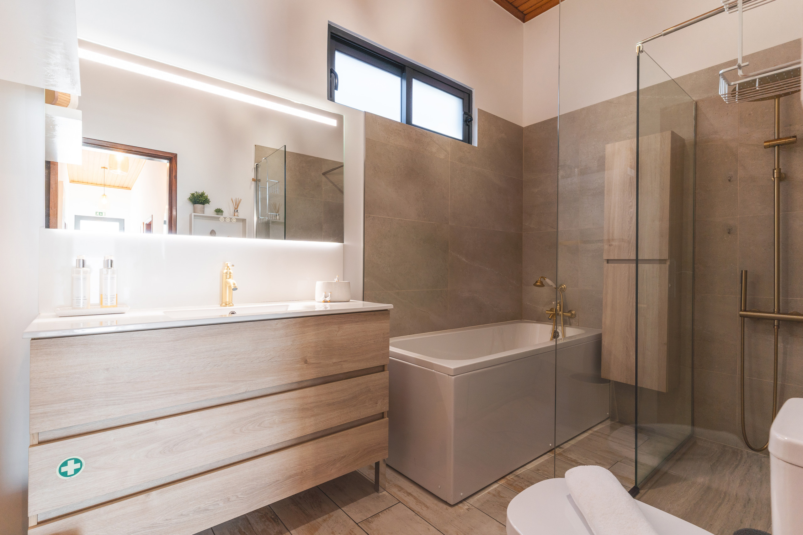 La casa incluye un baño completo con ducha y bañera y un aseo adicional. La cocina está totalmente equipada con todo lo necesario para cocinar a diario, incluyendo nevera, congelador, horno, microondas, vitrocerámica, cubiertos, platos, lavavajillas y otros utensilios esenciales. También hay lavadora y secador de pelo.
