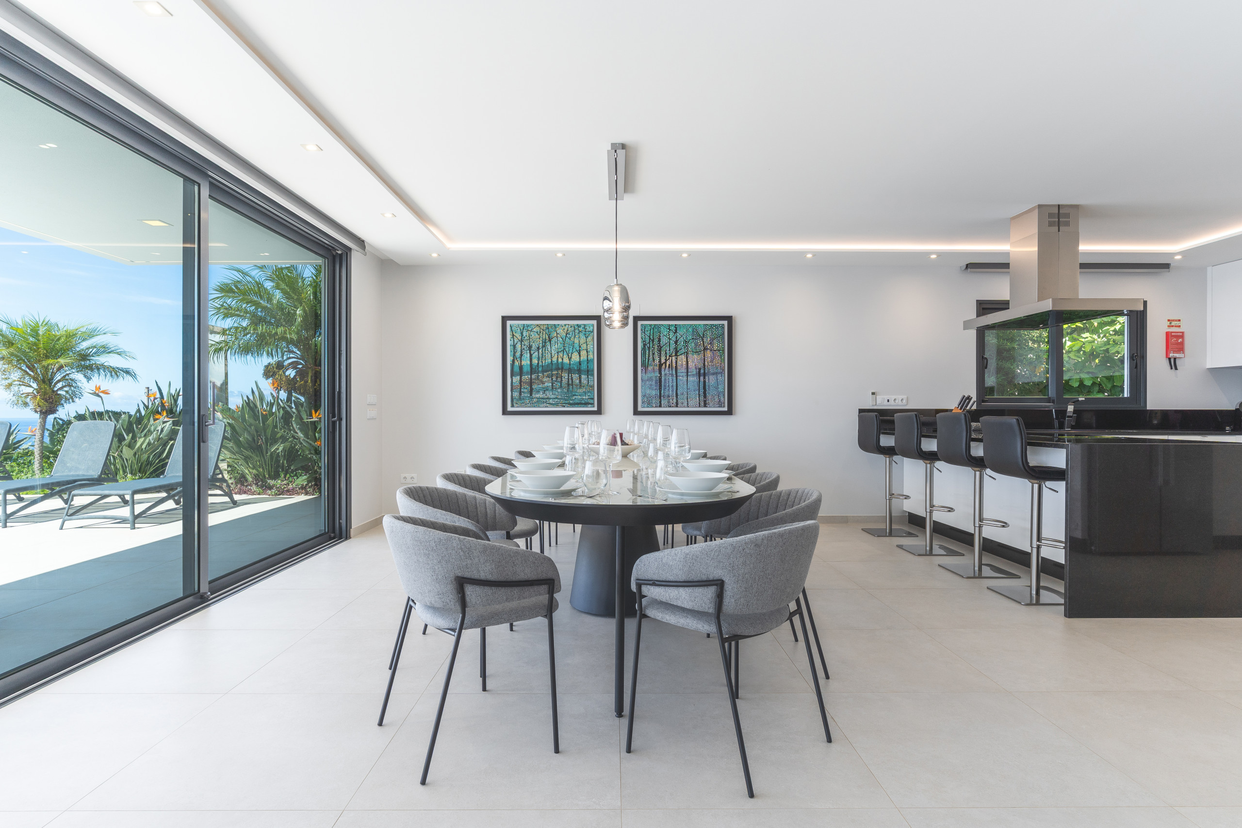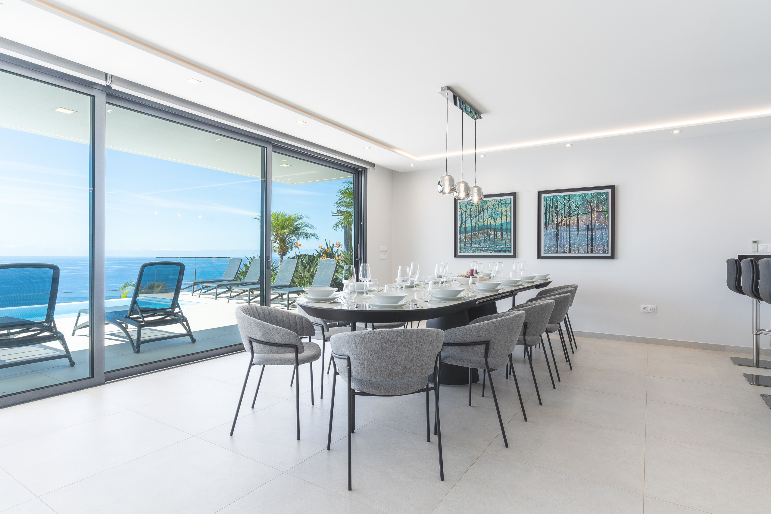 En el exterior, la villa dispone de piscina privada con hermosas vistas al mar, zona de barbacoa y aparcamiento exterior. El espacio está diseñado para disfrutar del clima suave de Madeira, ofreciendo un ambiente tranquilo para compartir momentos juntos.