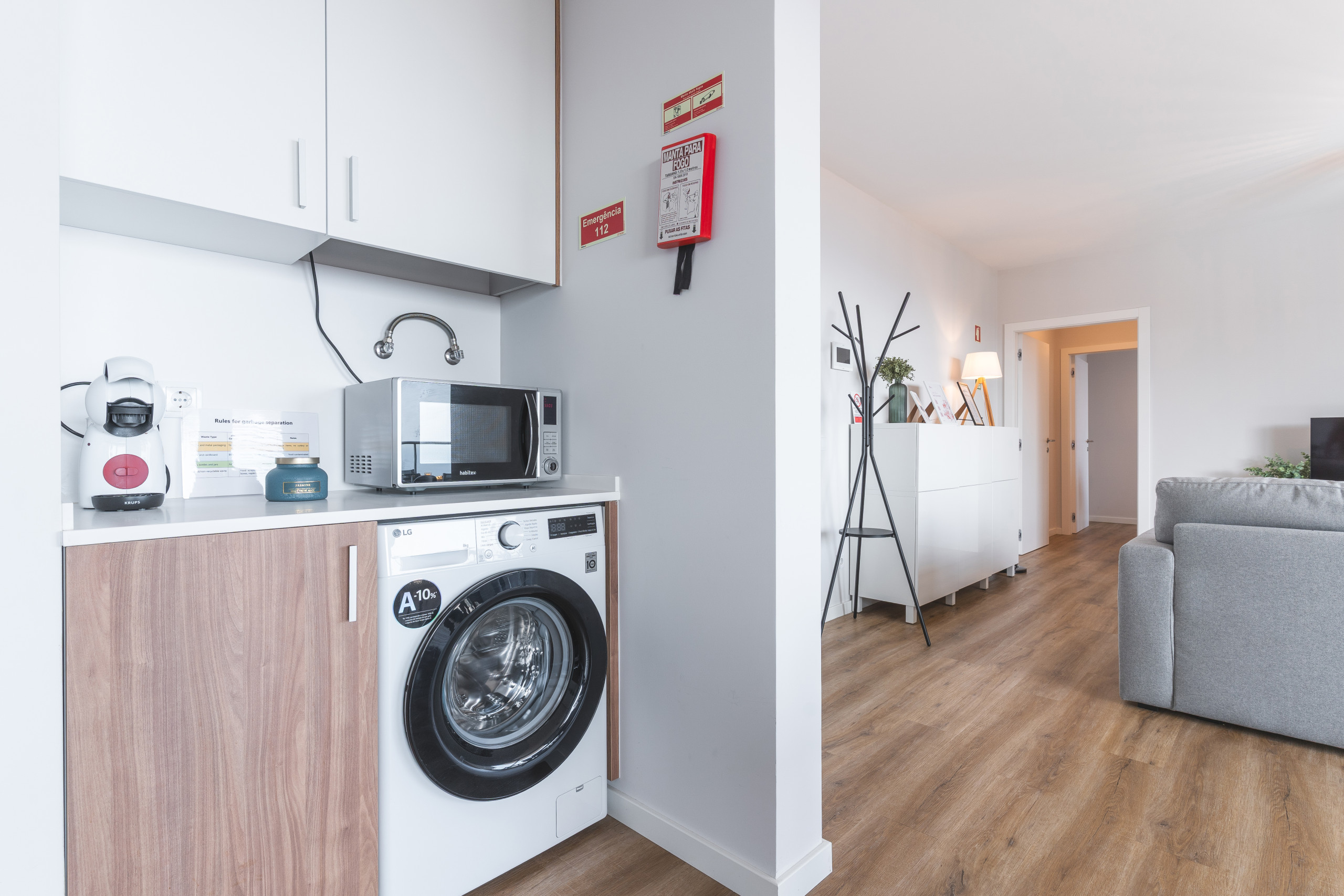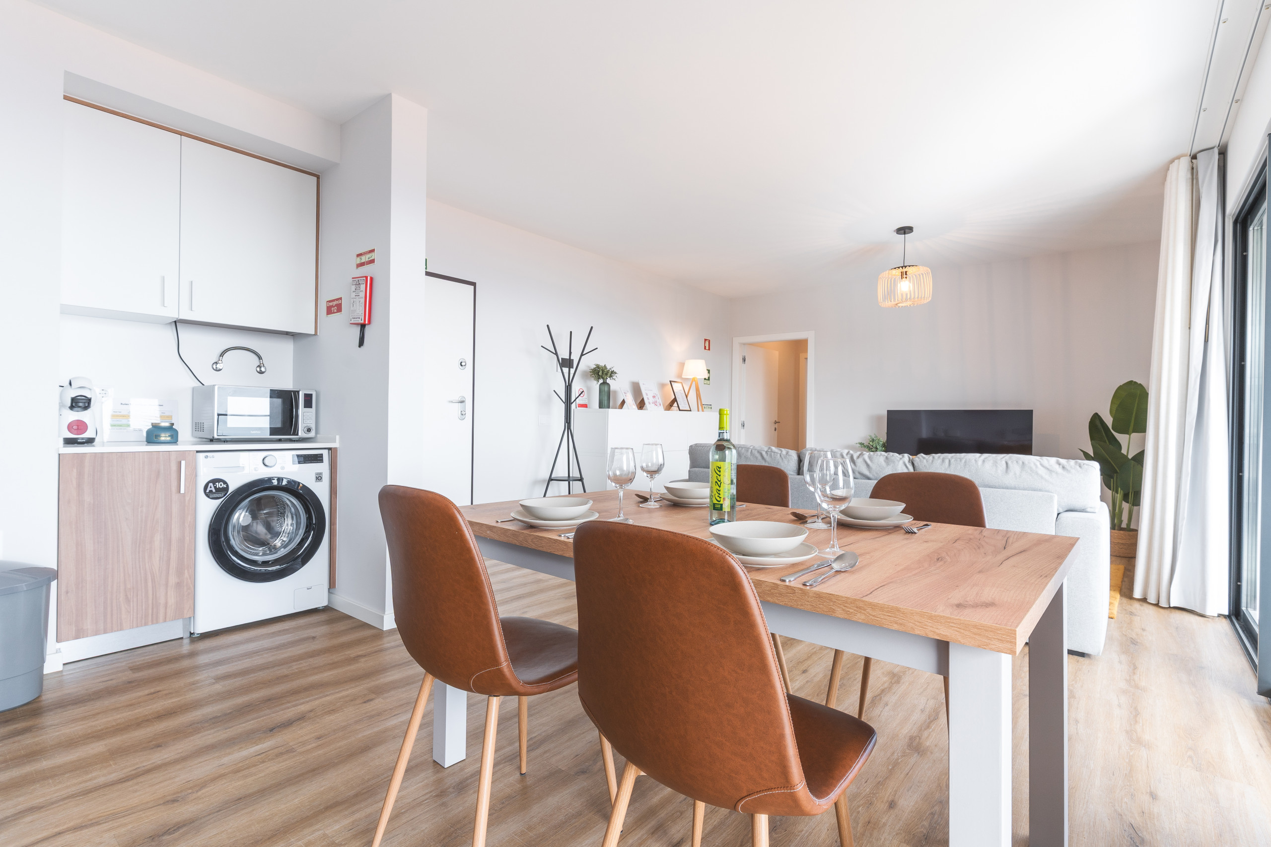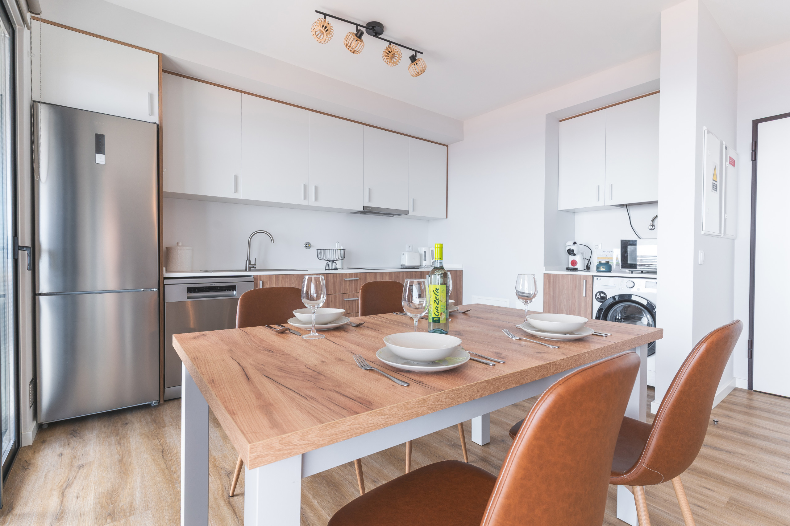 Il comprend une chambre avec un lit queen-size et un canapé-lit dans le salon. Il y a deux salles d’eau : une avec douche et une seconde toilette séparée. La cuisine est équipée d’un réfrigérateur, congélateur, four, micro-ondes, plaques de cuisson, lave-vaisselle, couverts, assiettes et ustensiles de cuisine. Un lave-linge et un sèche-cheveux sont également disponibles.